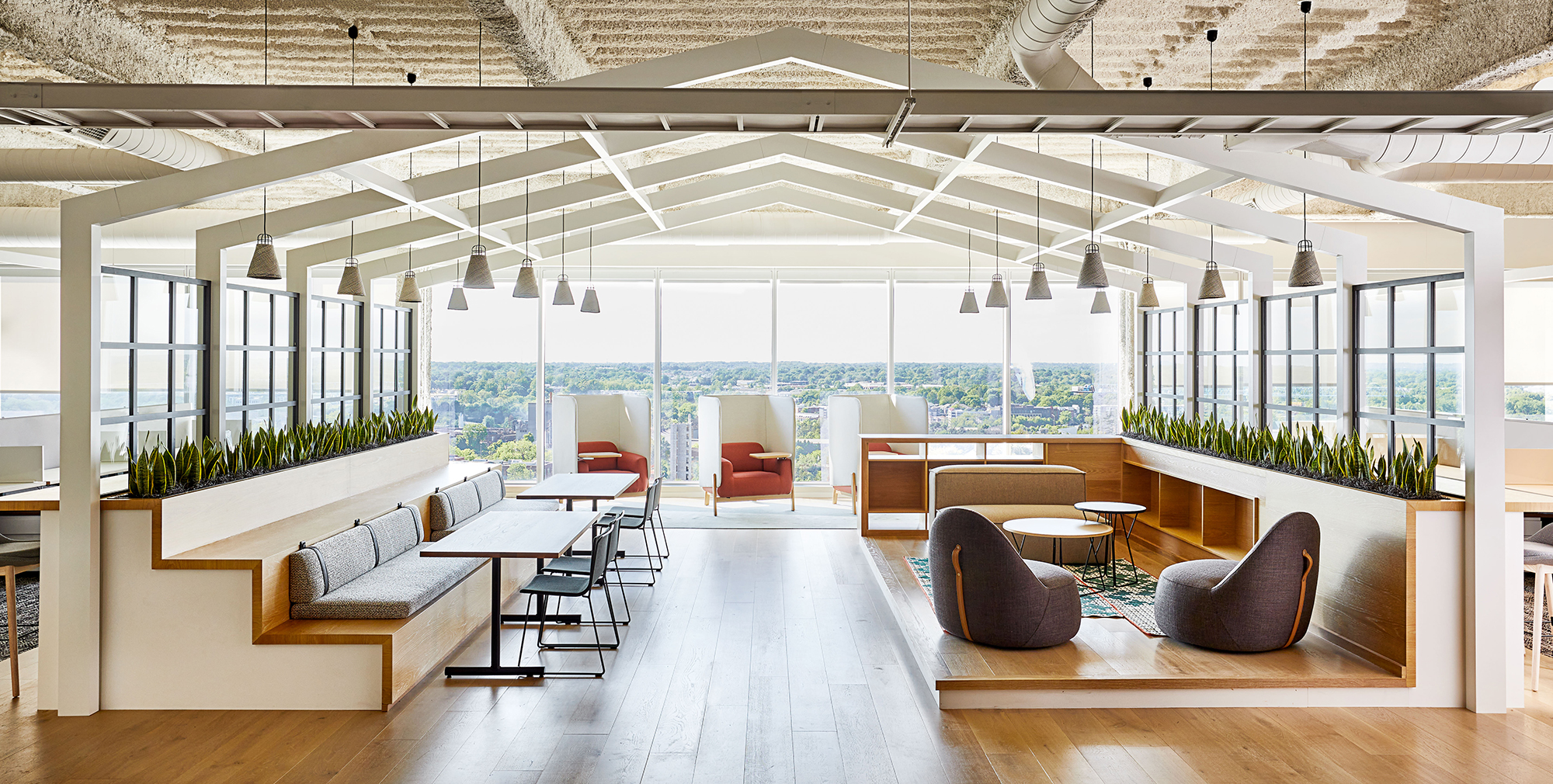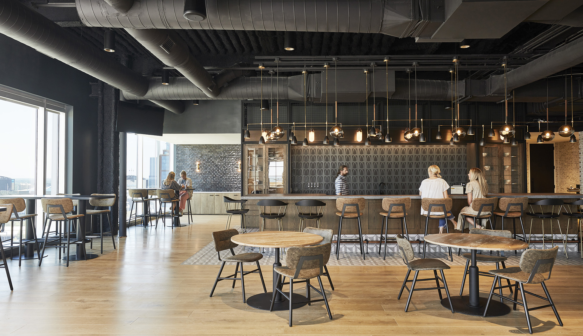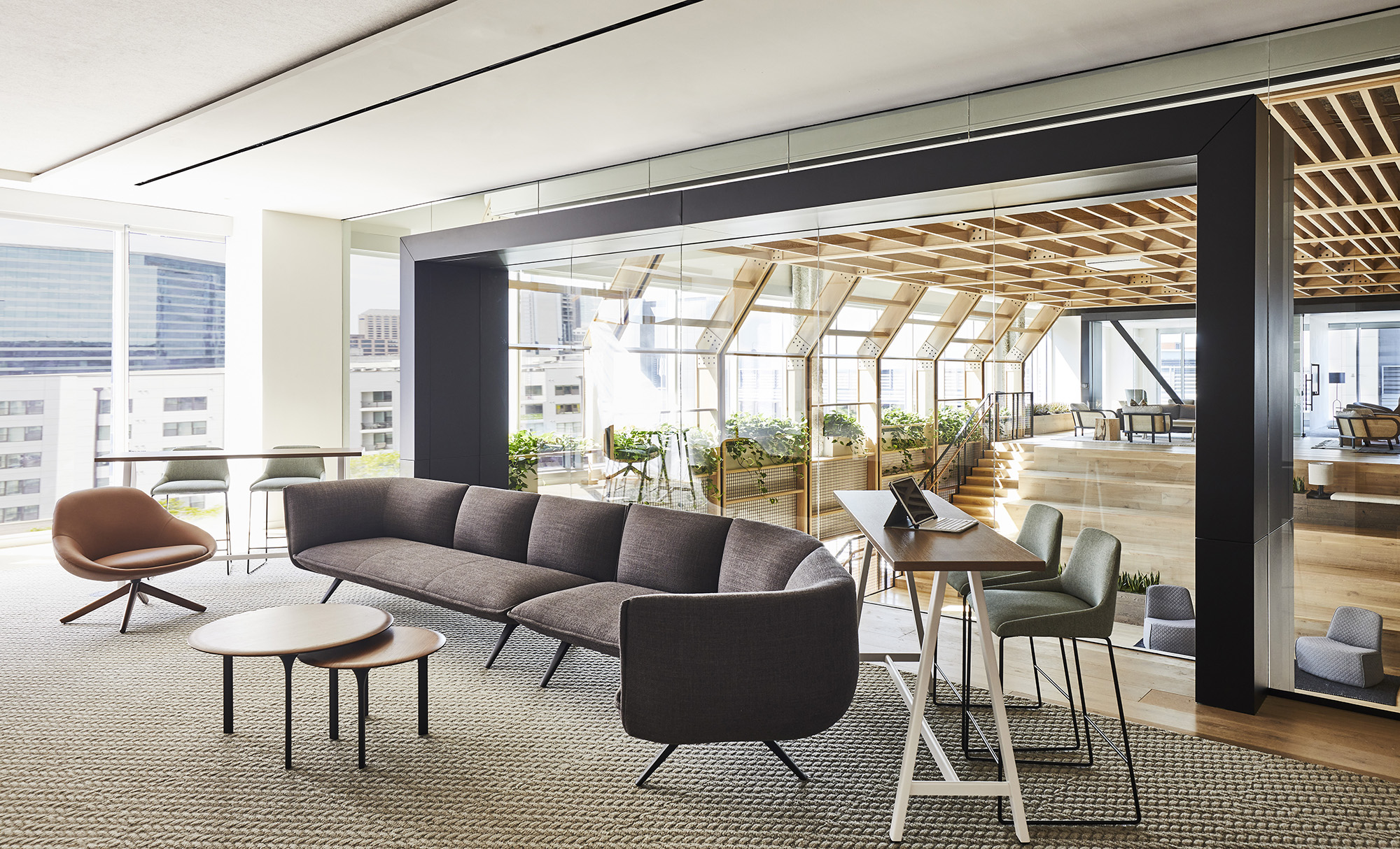 The design of the 6 story, 176,000 Square foot space was led with a resimercial aesthetic, merging together the hospitality features of a corporate office space with the design elements of a residential environment. The furniture was curated from over 100 different vendors, allowing the dealer and design teams to layer in variety throughout each space to create unique meeting and amenity spaces on each floor. Several pieces throughout the social environments were custom designed, curated, and manufactured to look like residential furniture, but with the functionality of a commercial space.