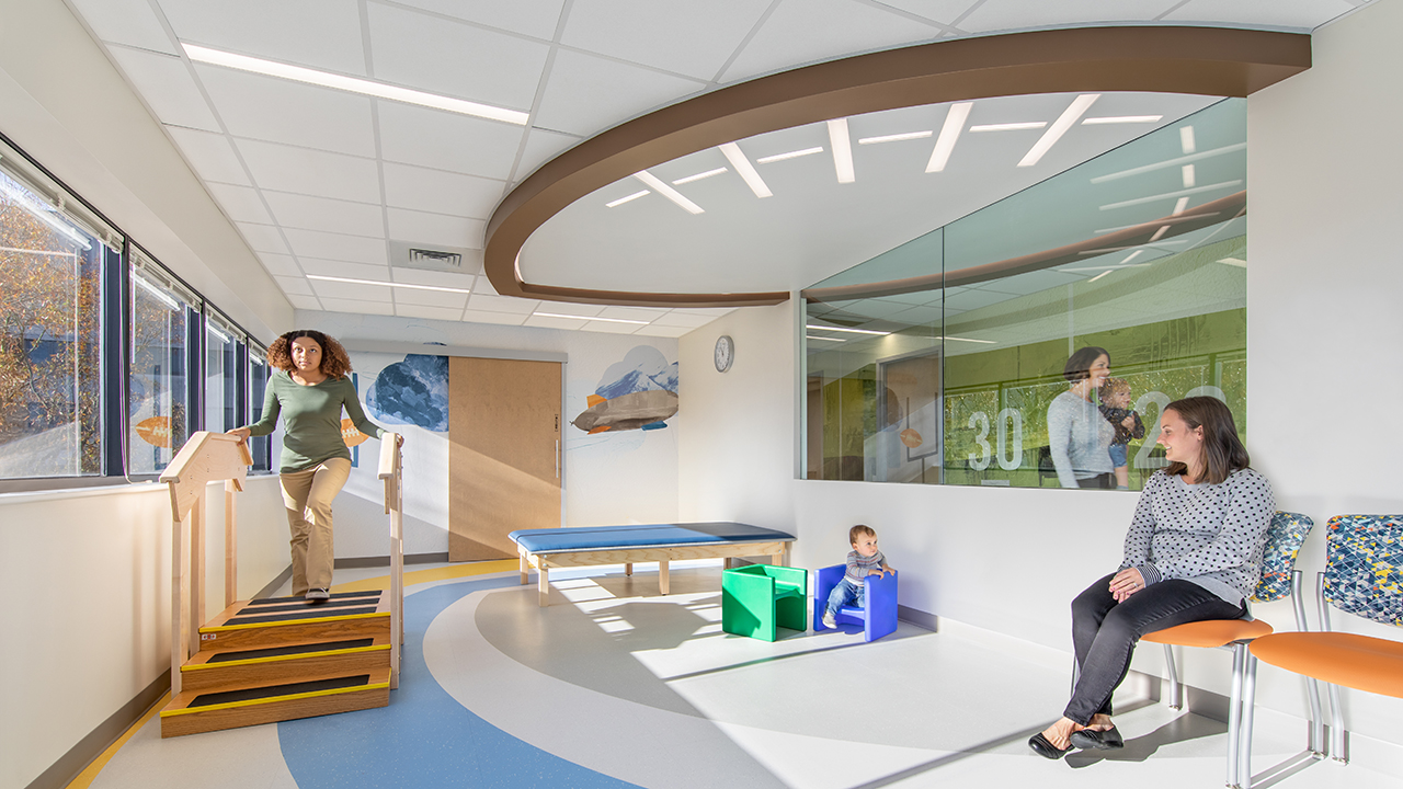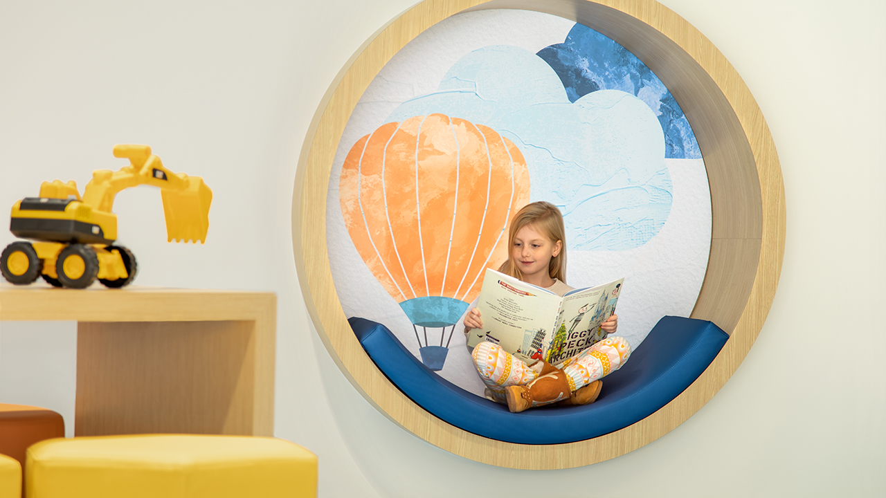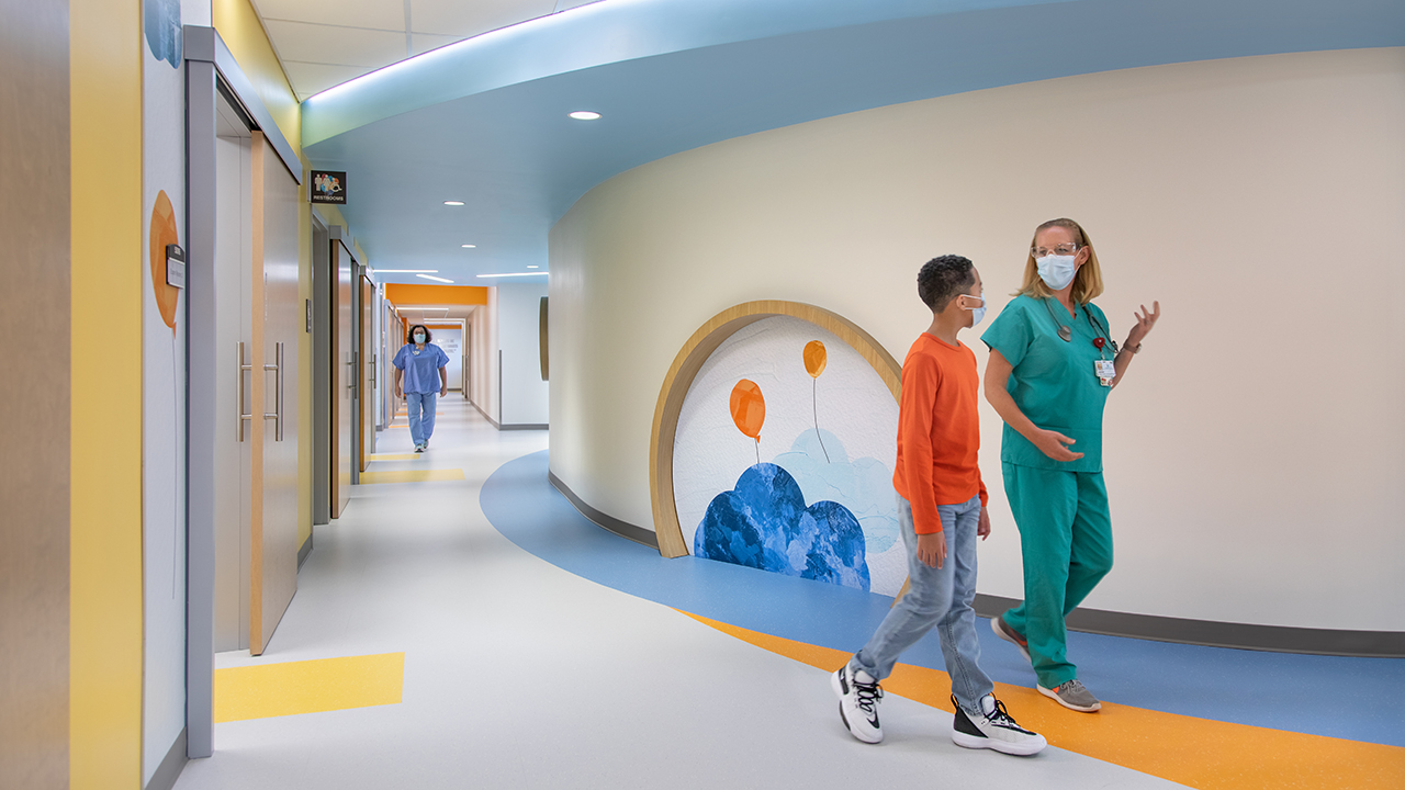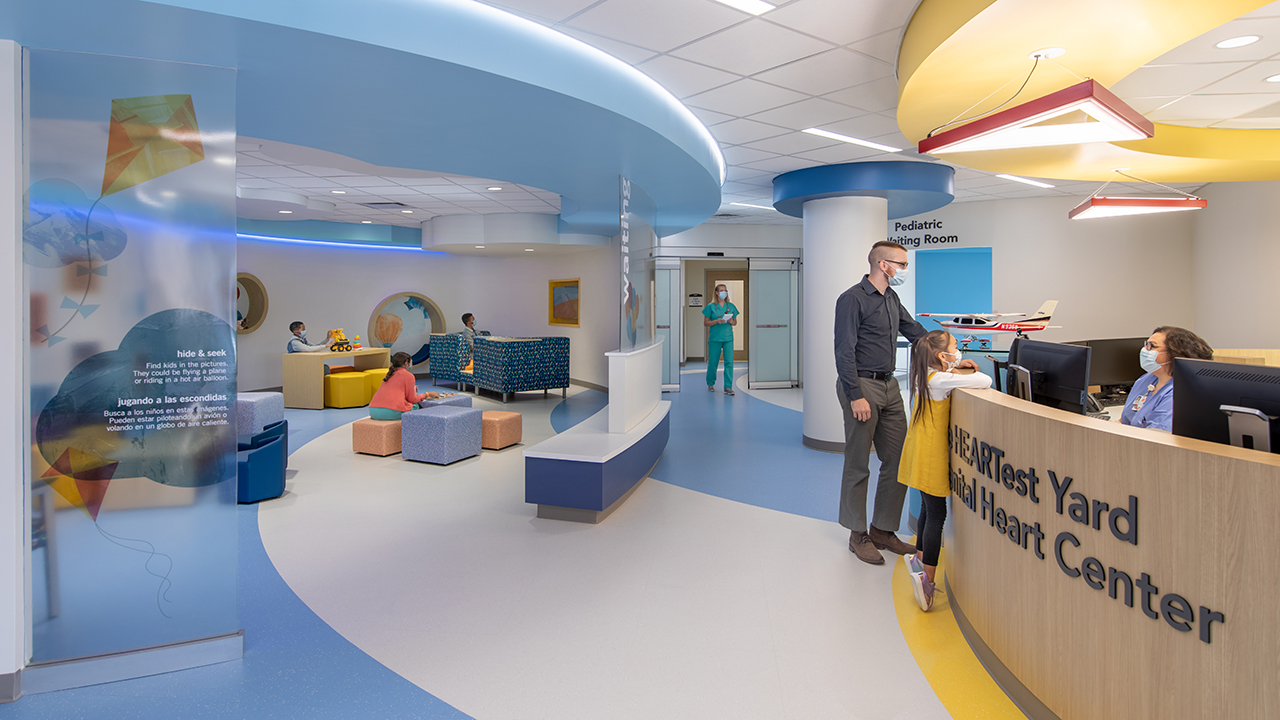 With central goals of enhancing customer experience, increasing staff efficiency, and enhancing multi-disciplinary sub-specialty care, the team developed an internal on-stage/off-stage concept, with emphasis on positive distraction, wayfinding, and natural light. Each floor has a featured theme expressed through design, environmental graphics, and interactive experiences. Now, patients and their families can receive integrated, multi-specialty care in a single, uplifting location full of possibility.