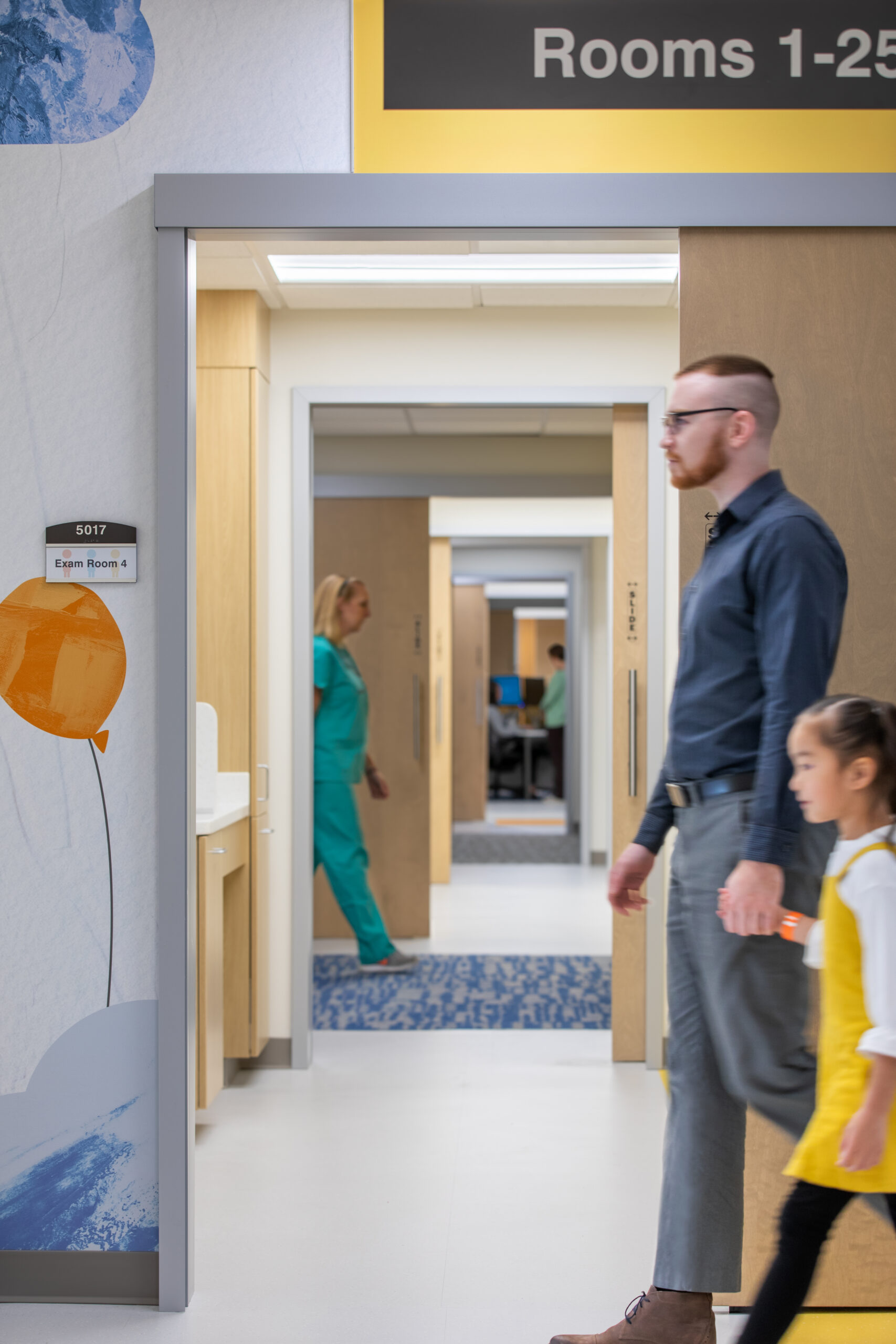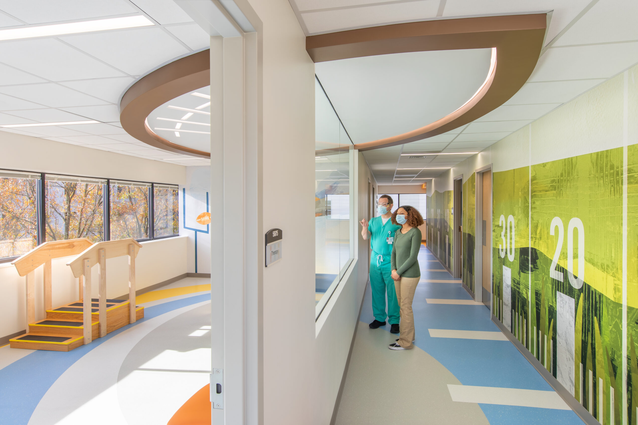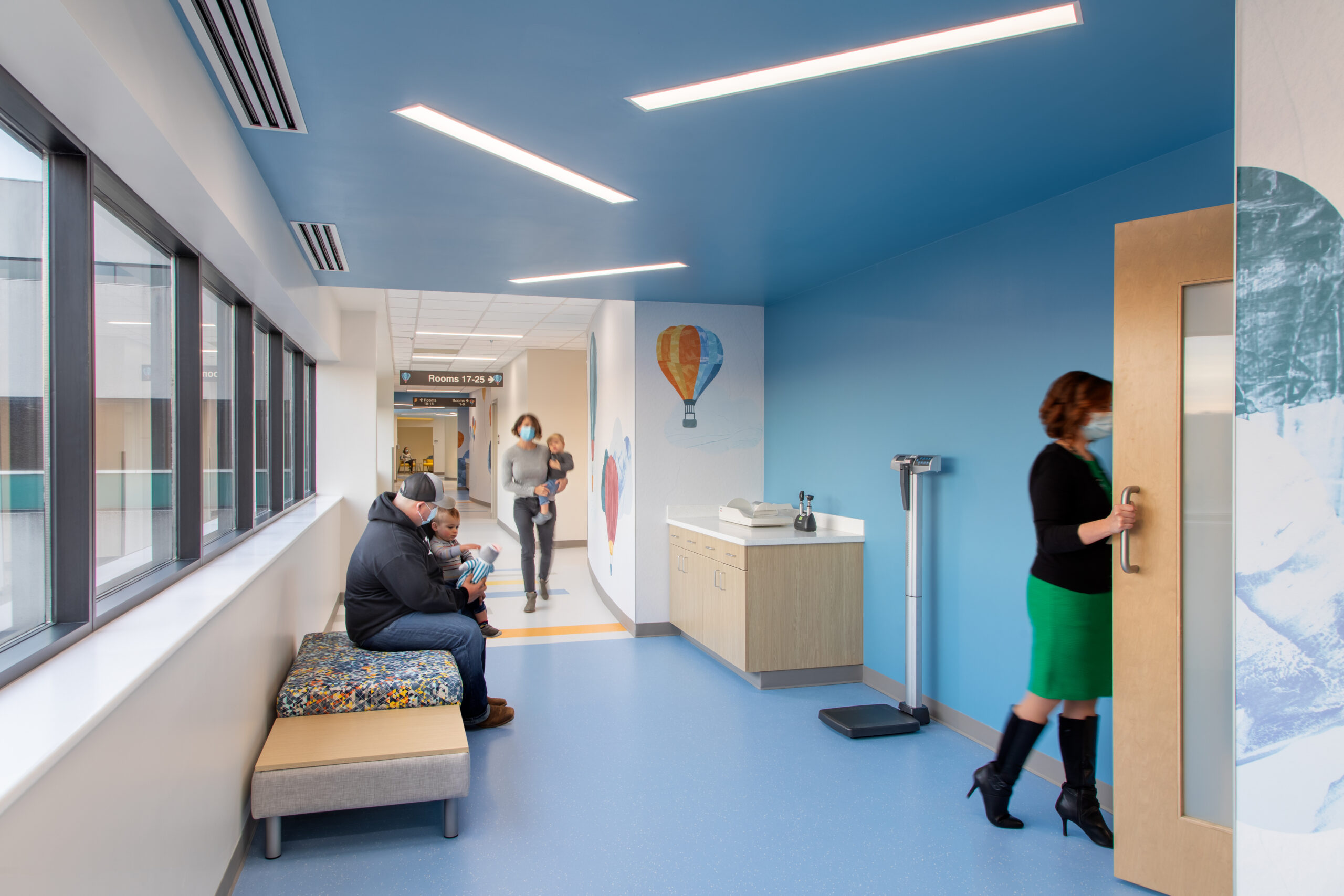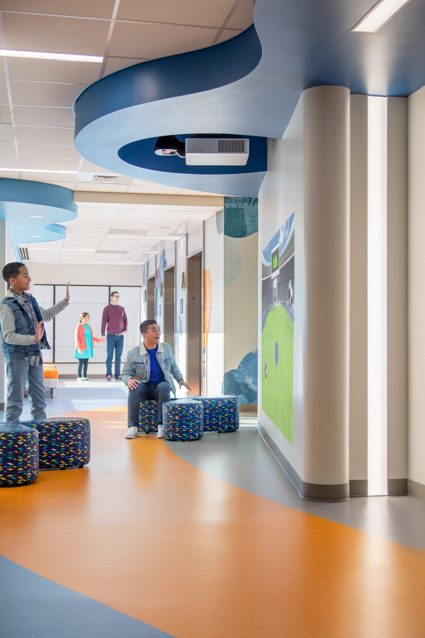 With central goals of enhancing customer experience, increasing staff efficiency, and enhancing multi-disciplinary sub-specialty care, the team developed an internal on-stage/off-stage concept, with emphasis on positive distraction, wayfinding, and natural light. Each floor has a featured theme expressed through design, environmental graphics, and interactive experiences. Now, patients and their families can receive integrated, multi-specialty care in a single, uplifting location full of possibility.
