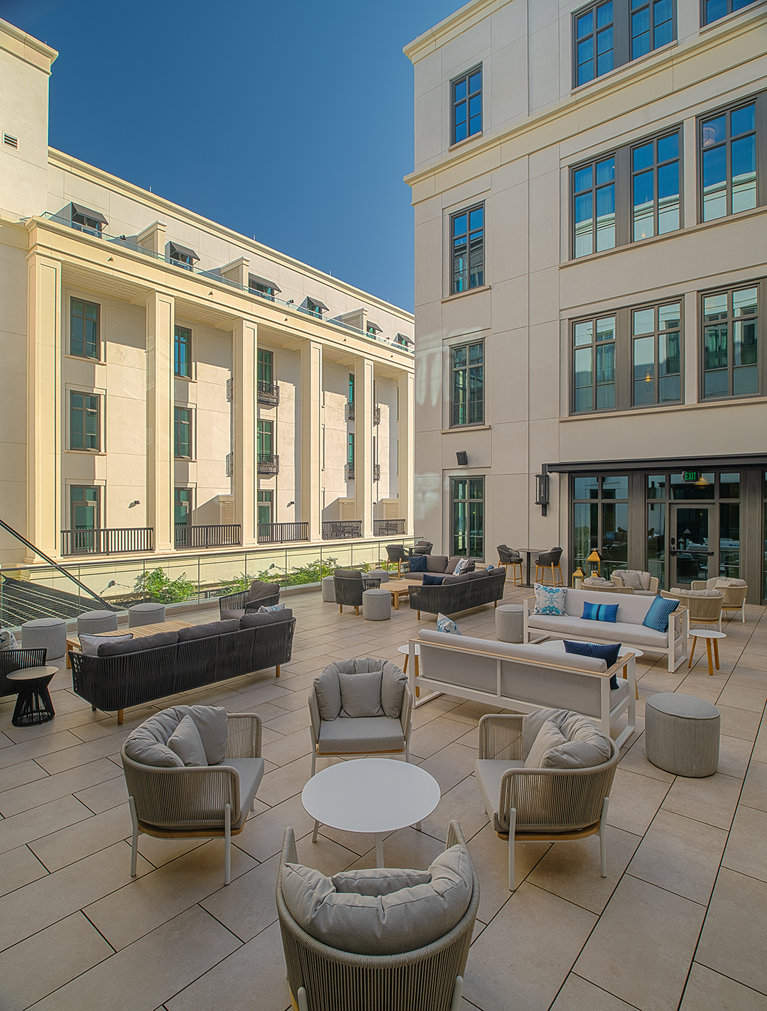 Offering 100 luxury vacation ownership units in the heart of historic Charleston, Liberty Place embraces an authentic architecture honoring the historic legacy of its context while being entirely of its time. The new five-story building celebrates its historic siting while providing modern amenities to unit owners and the public. Public spaces – the lobby, ground floor bar, and grab-and-go café – are strategically located along a perimeter corridor on the building’s first floor. This careful programming welcomes the public into the space without violating privacy for unit owners.