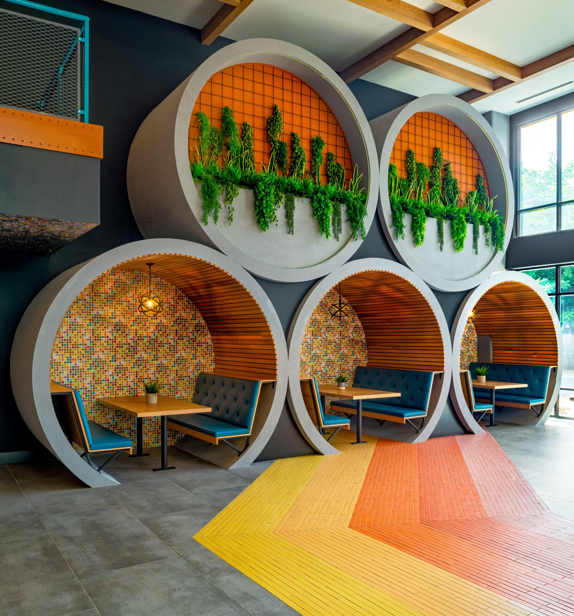 Charlotte is infused with a vibrant way of life, individual expression and aspirational energy. The client wanted to create an environment that would resonate with this notation while honoring the distinct character of the properties’ neighborhood. Optimist Park, where Craft is located, sits adjacent to North Davidson—affectionately known as NoDa—a district celebrated for its transformation from a historic mill town into a thriving hub of art, culture, and creativity. This proximity to NoDa, along with the site’s shared footprint with a beloved local brewery, offered a unique opportunity to infuse the project with authentic, place-based storytelling.