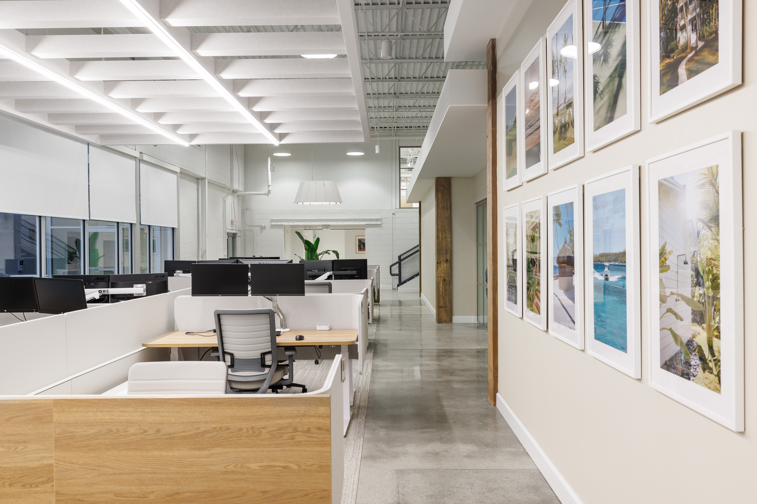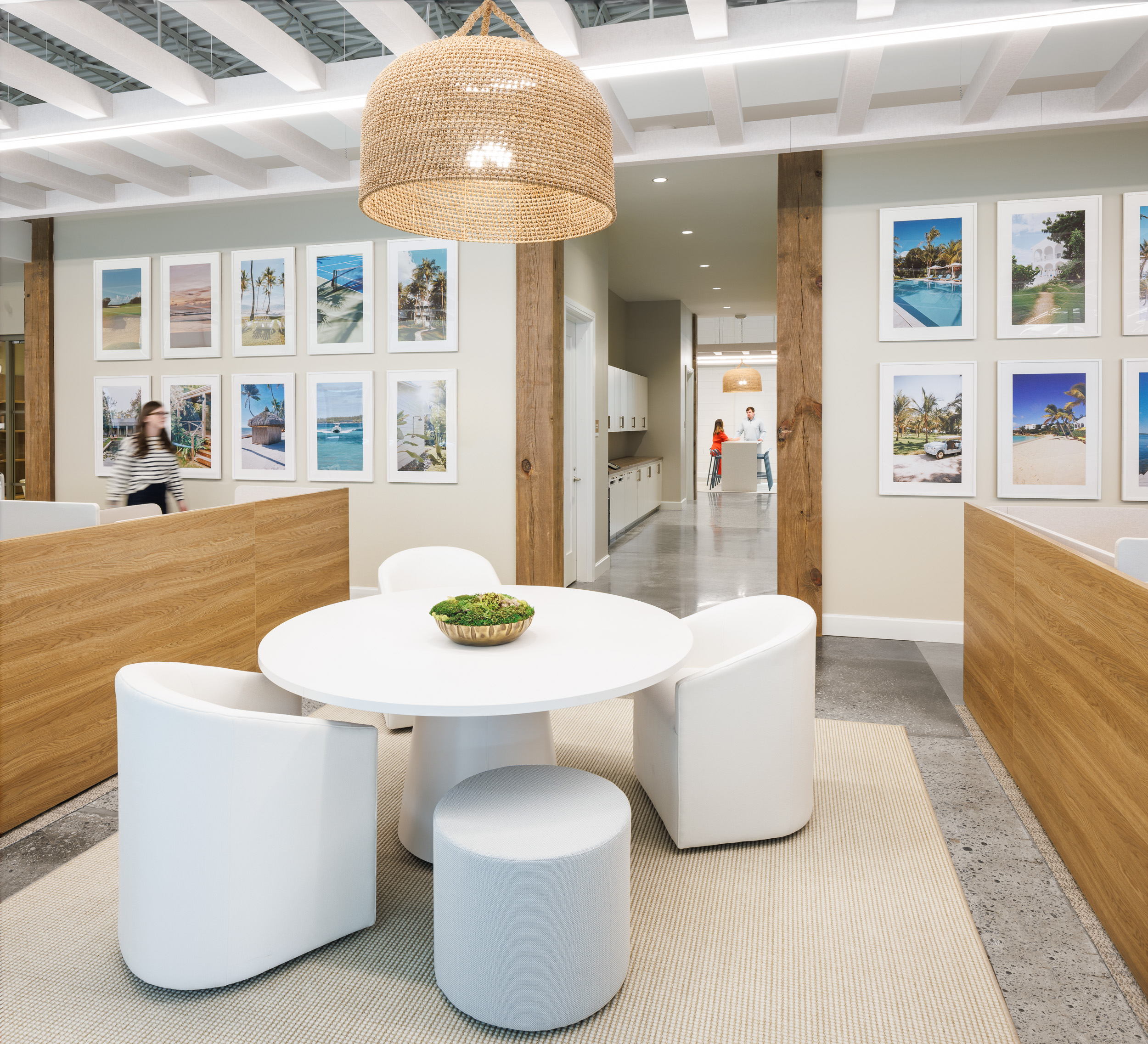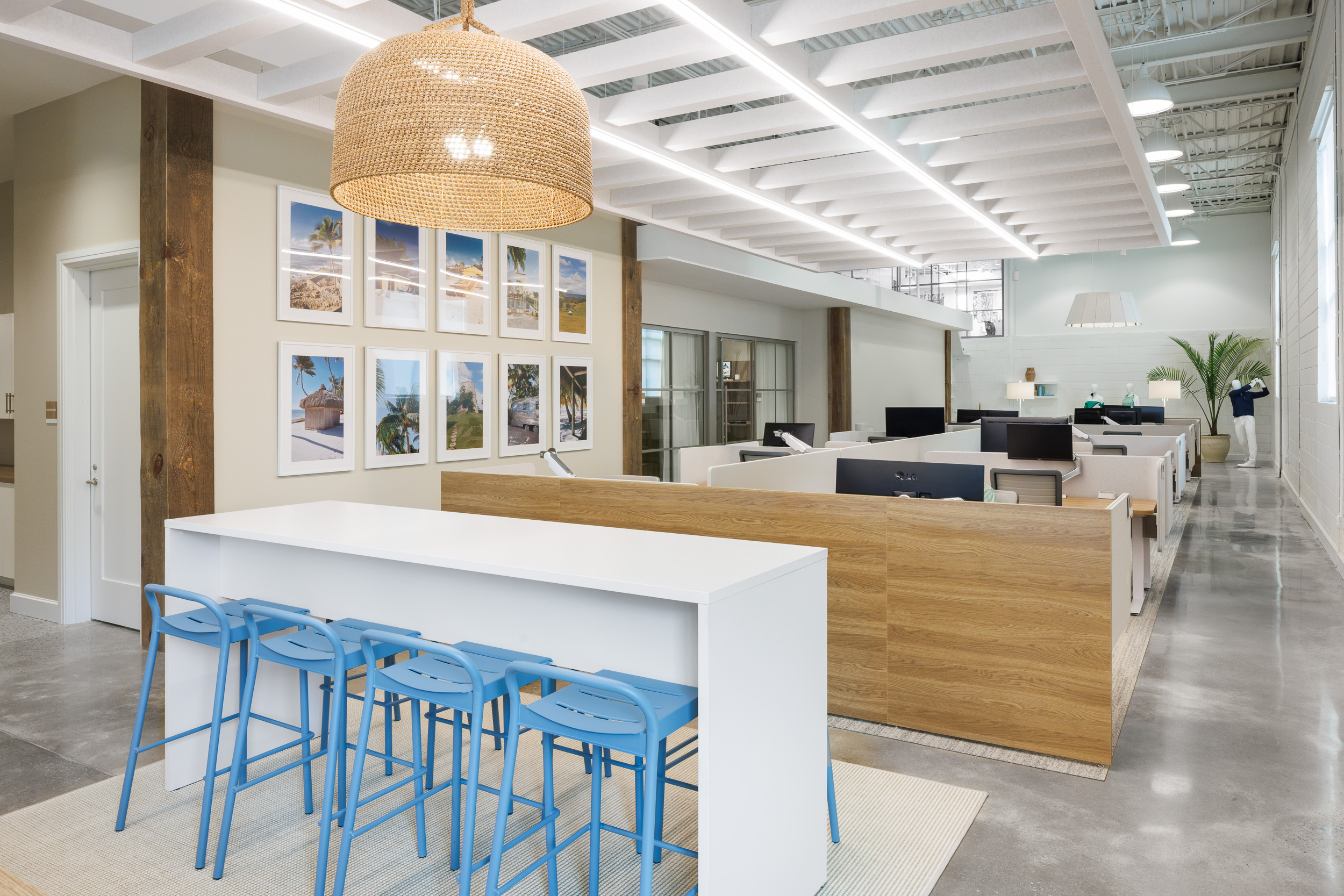 The goal was to create a headquarters that authentically embodies the brand identity—open, inviting, and inspired by the coastal lifestyle—while blending historic architecture with coastal aesthetics to foster an environment where employees can connect, create, and thrive.