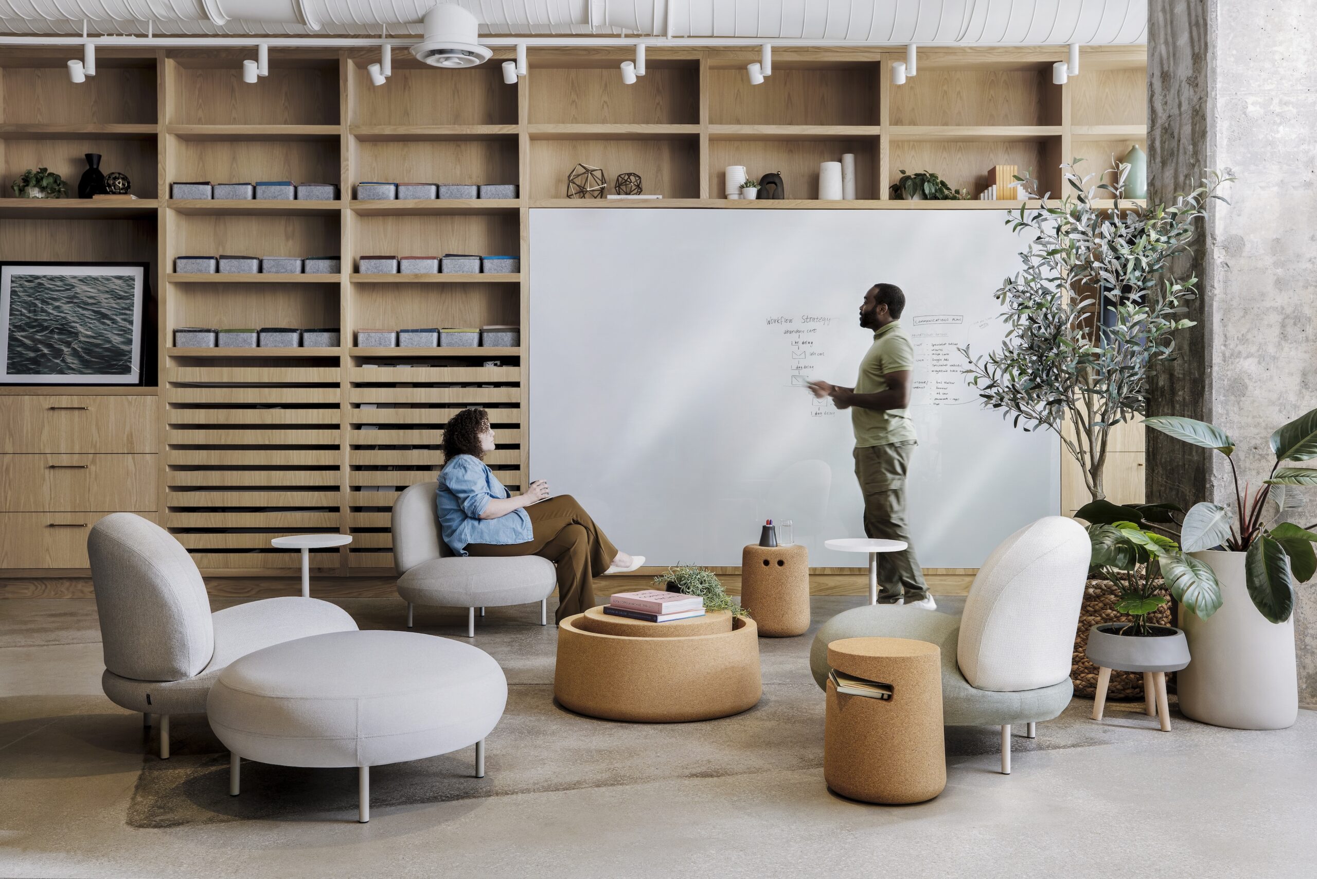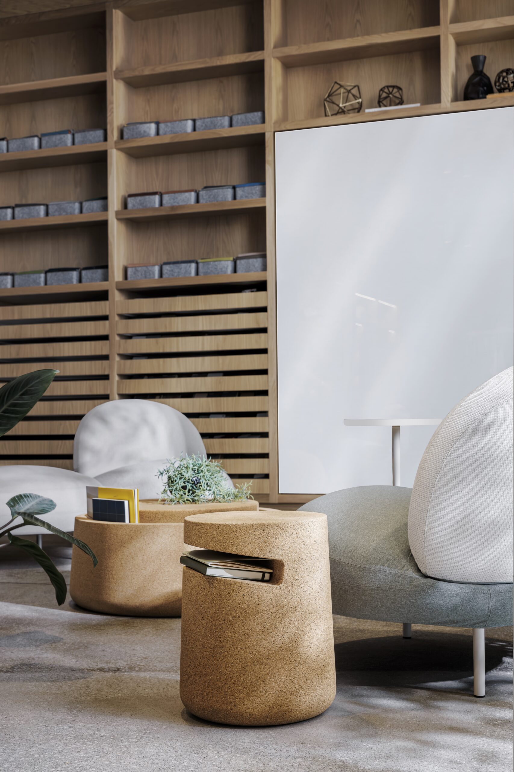 Bob, Art, Abe, and Arne are made entirely from waste materials generated during the production of wine bottle corks and bonded with a solvent-free binder. Cork is naturally water-repellent, easy to clean, and offers sound-insulating properties. The products can either be mechanically recycled into new products or biodegraded at the end of life.