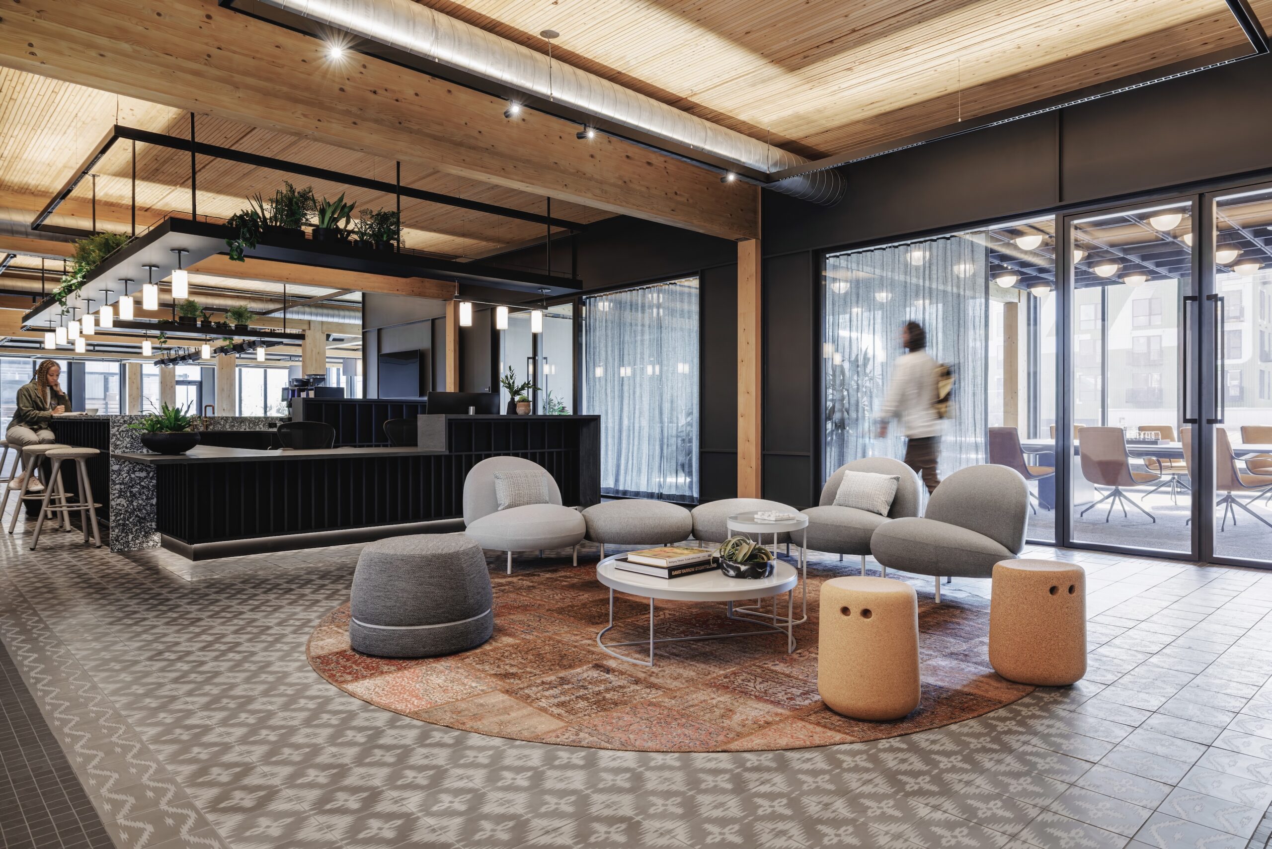 The warm and tactile Bob Cork Stool features a curved base with a concave seat. The iconic holes make it easy to move while adding a distinctive design element. Art is the smallest table, featuring an angled cutout that perfectly holds books. The medium-sized Abe has a lower shelf running around its entire perimeter. The largest table, Arne, is designed to function best as a central coffee table, showcasing a concentric cutout on top.