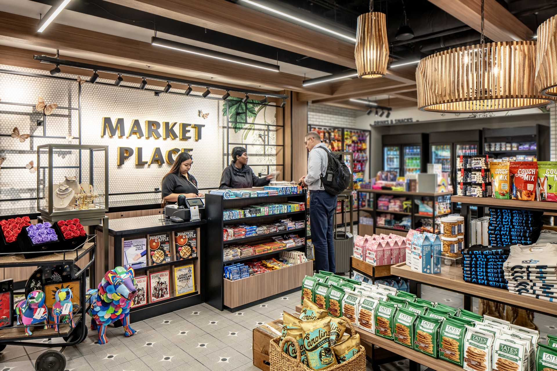 Located in Terminal A of Charlotte Douglas International Airport, Market Place reinvents the airport retail experience by blending refined convenience with regional character. This 1,960-square-foot family and minority-owned boutique offers a curated selection of locally inspired gifts, travel essentials, and premium food and beverages in an environment that feels both intimate and elevated.
