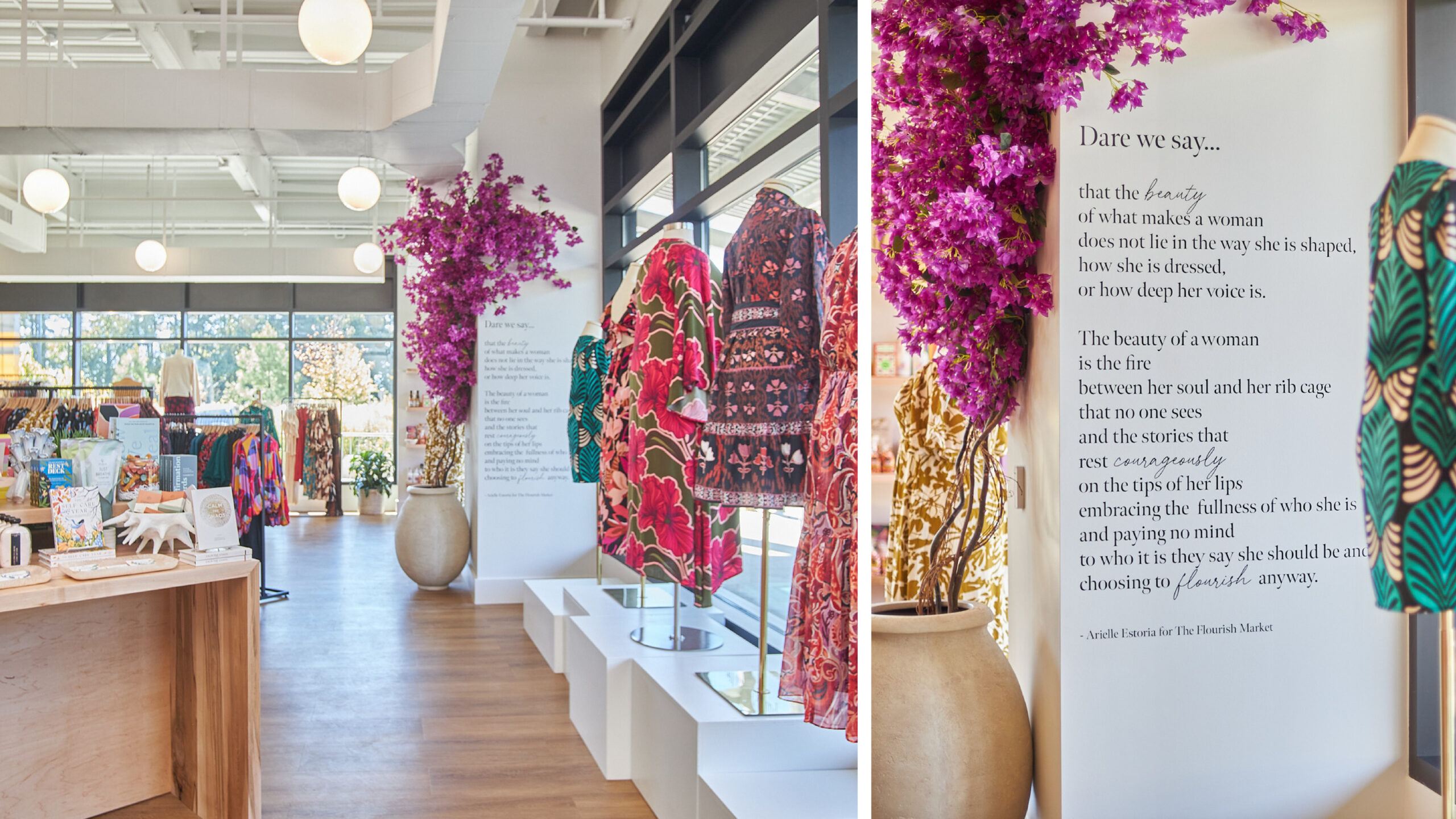 For its founder, Flourish Market is more than a retail store—it’s a mission. Every product sold creates a ripple of positive change, supporting women and communities around the globe. This ethos extends beyond the merchandise to the very design of the space, which was crafted by an all-female team to reflect the founder’s vision of empowerment, diversity, and inclusivity.