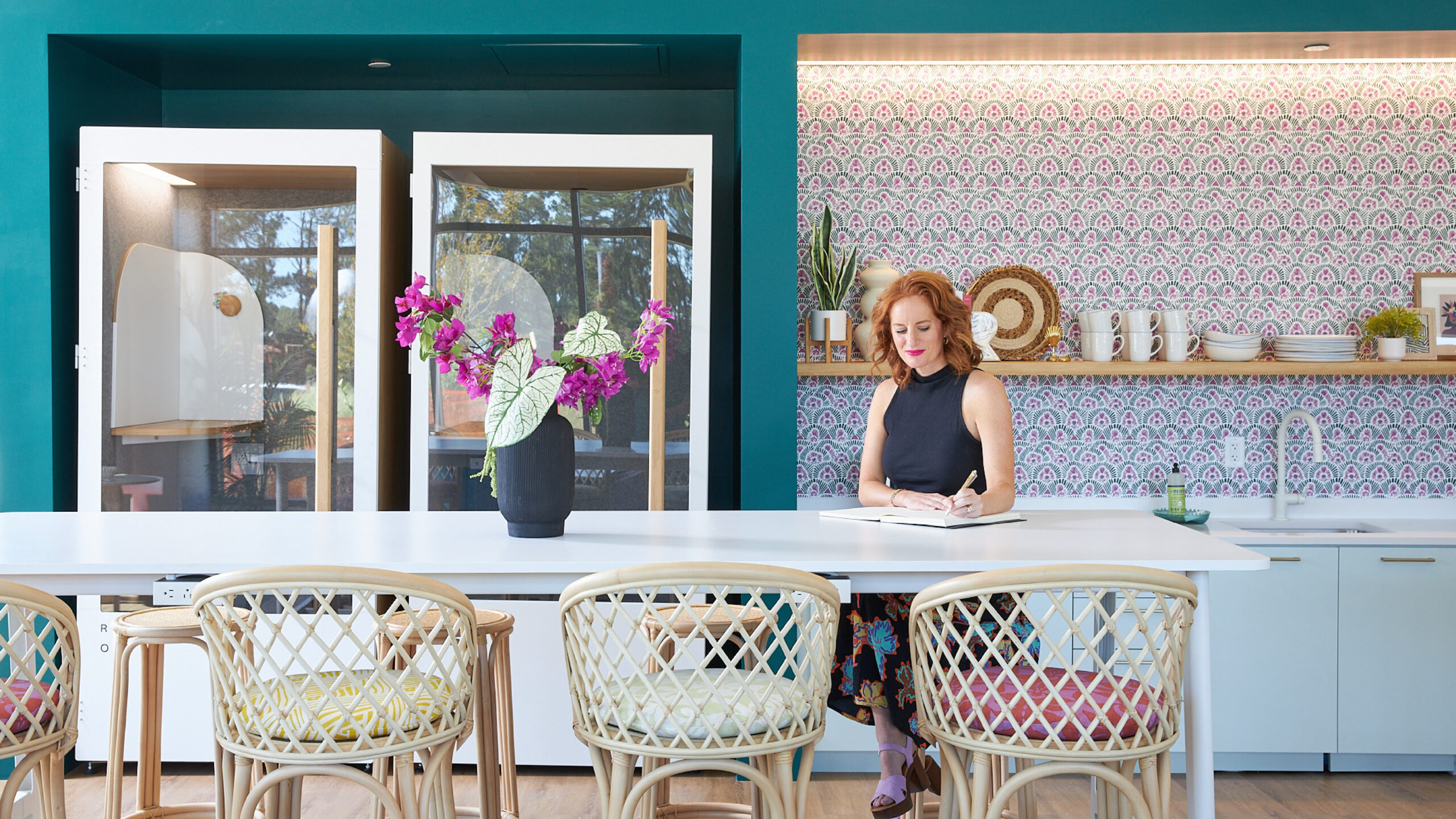 The back of the store reveals a women’s co-working and events space tailored toward women entrepreneurs and small businesses. It’s a place where women can work on projects, build their networks, or simply find a safe, supportive environment to connect with others. Accommodating up to 40 people at a time, the space needed to be flexible to support dozens of members who access it throughout the week.