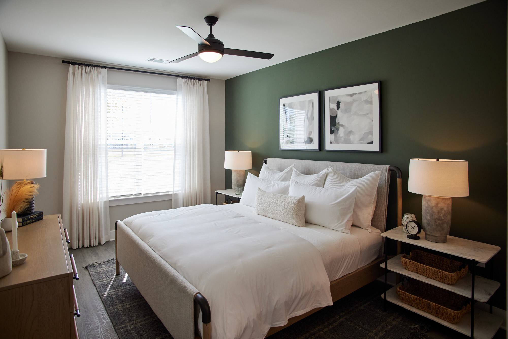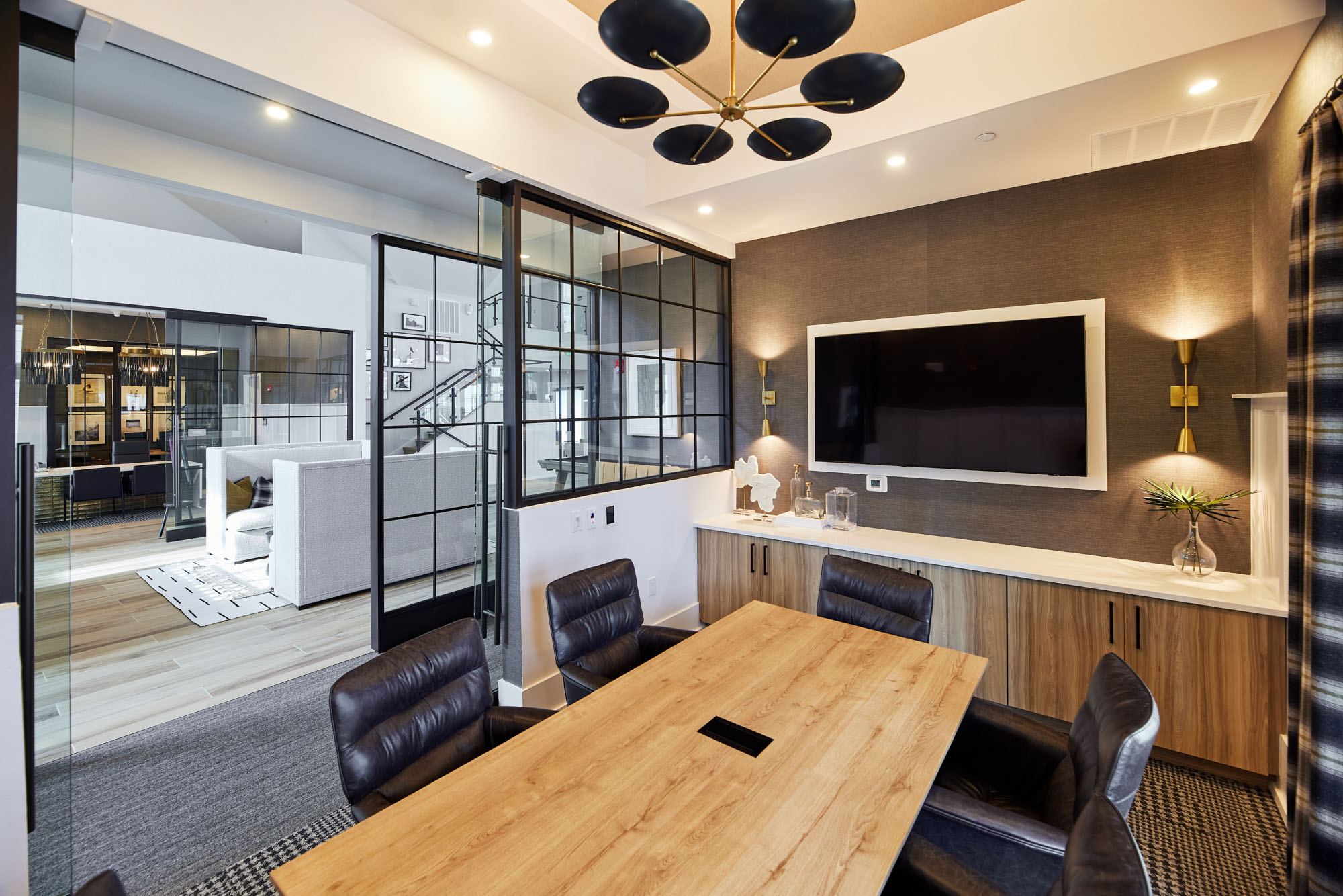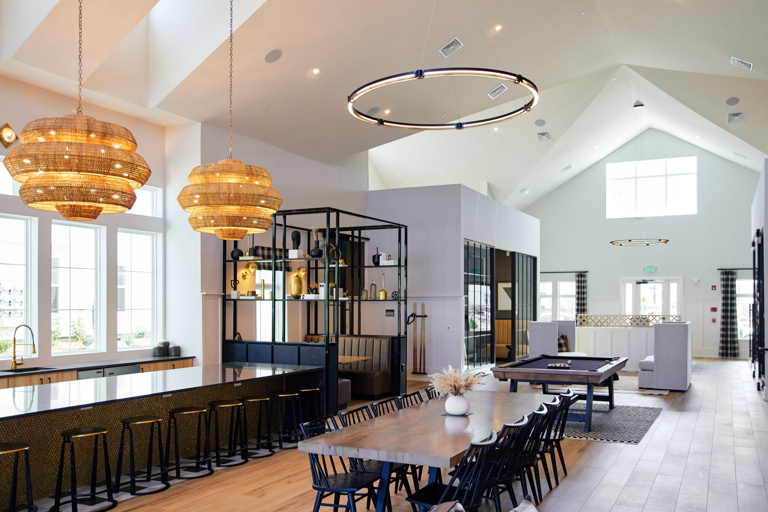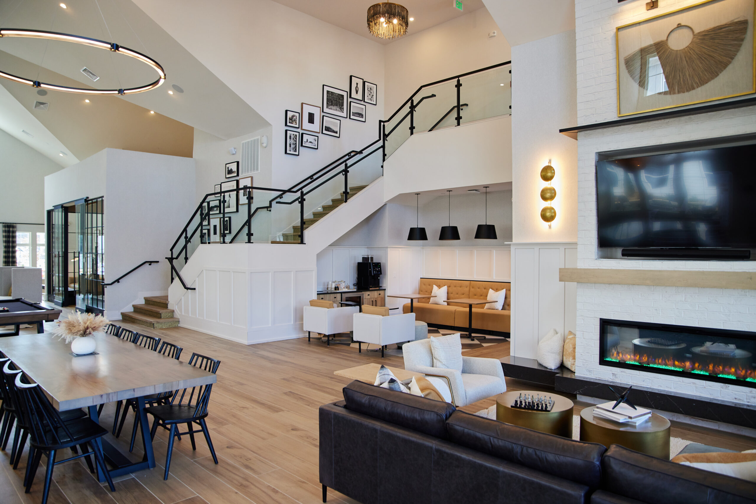 Residents enjoy over 9,000 square feet of curated amenity space, including a fully equipped business center complete with private workspaces and two conference rooms, a spacious catering kitchen ideal for hosting, a cozy coffee bar, and an inviting wine lounge perfect for unwinding. The 24-hour fitness center supports active lifestyles, while communal areas encourage connection and comfort. This is modern farmhouse living – tailored, elevated, and rooted in community.