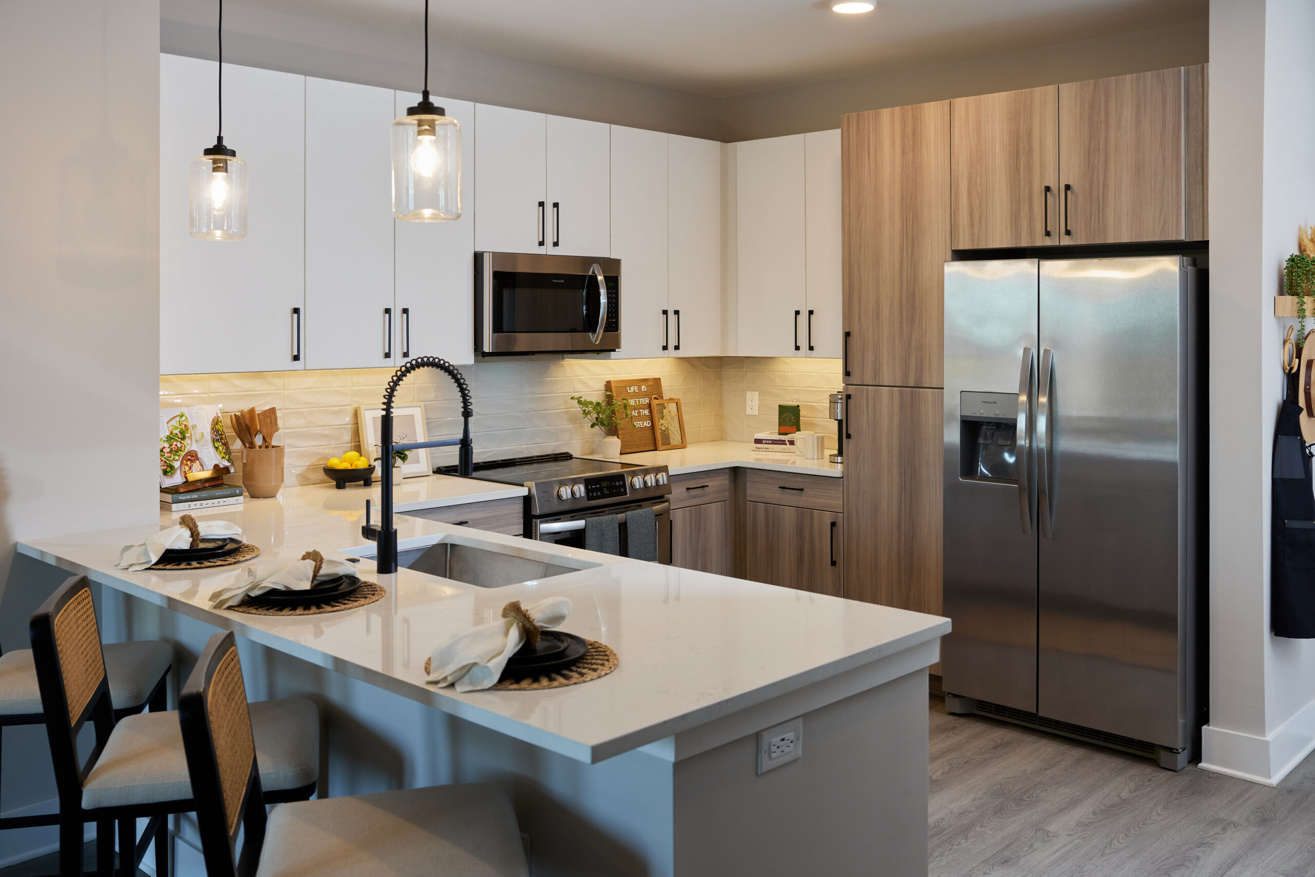Located in Charlotte, North Carolina, this thoughtfully designed apartment community offers a distinctive living experience for empty nesters, young professionals, and families alike. Blending modern sophistication with timeless homestead charm, The Stead at Farmington, aptly named, embraces a masculine aesthetic softened by elegant finishes and refined details.
